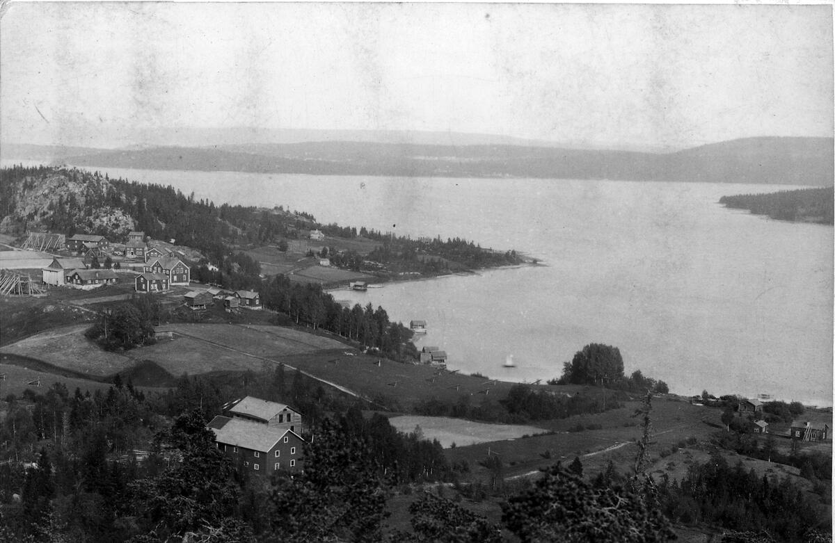 Jordbruksbebyggelse. Av husgrupperna i fonden till vänster är den bakre Bäck 7:1 och den främre Bäck 1:14.