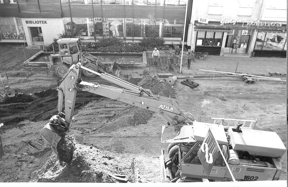 Torgets tillkomst i Kramfors. I bakgrunden biblioteket och Gustafsons bar och konditori.