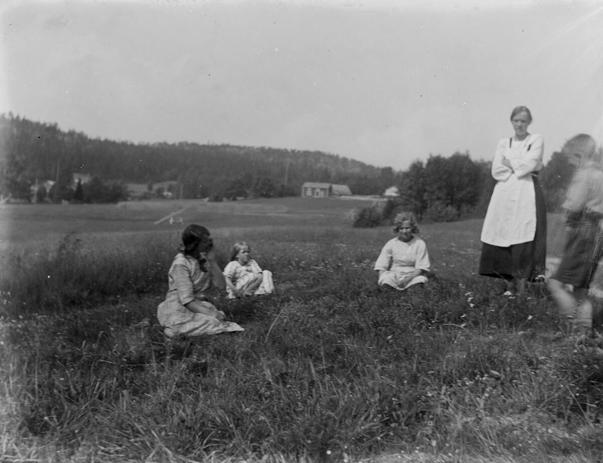 Troligen från Sahlströms i Dalom, upp mot Svedjan. I mitten yngsta och äldsta dottern Sahlström samt deras mamma.