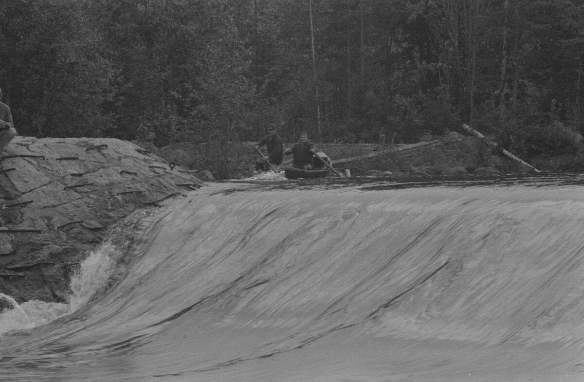 Nedströms Ramsele kraftverk. Tryggve Persson och Malte rensar ovan forsnacken.