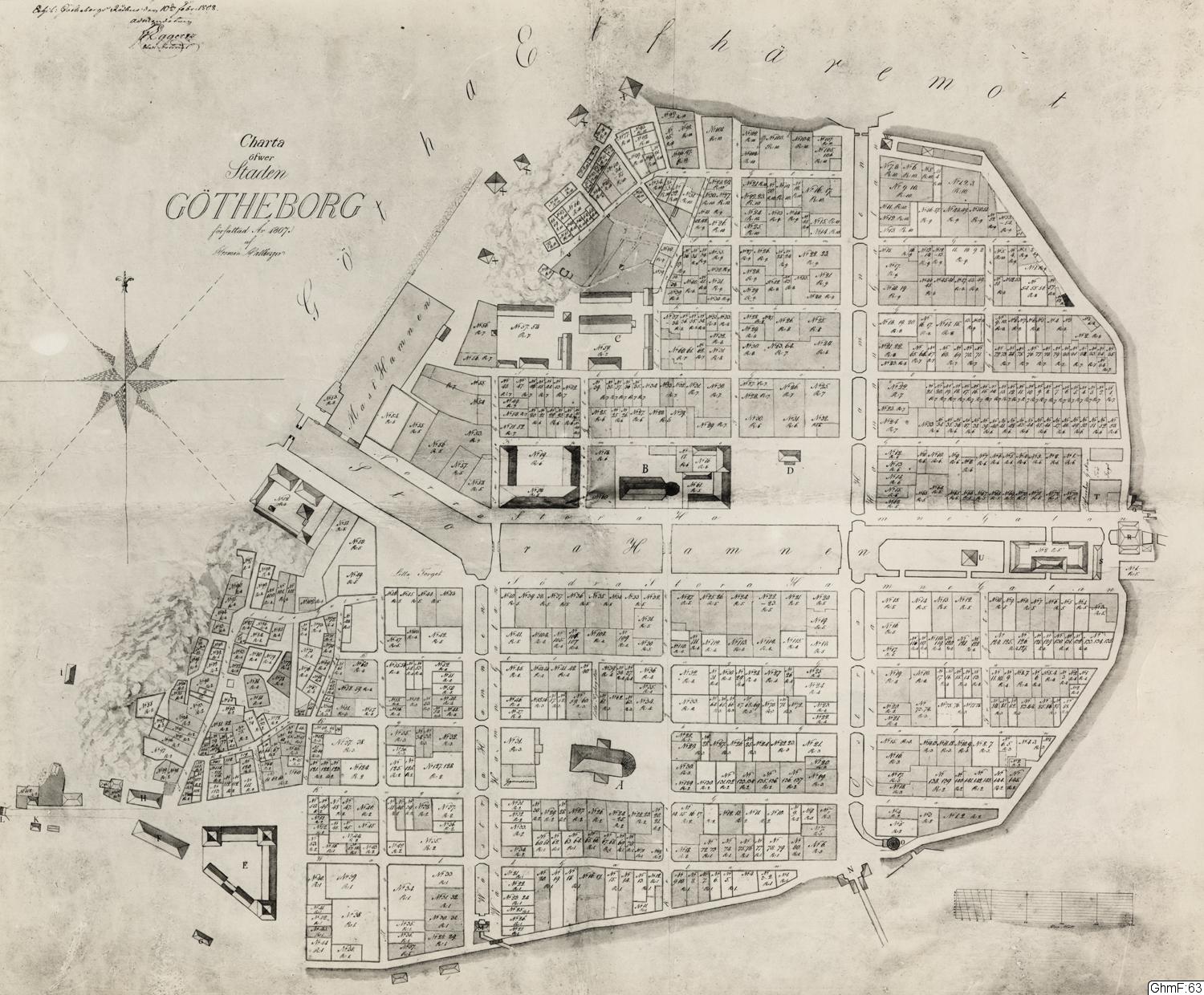 Fotgrafi av Tomtkarta över Göteborg från 1807, godkänd i Rådhuset 1808.