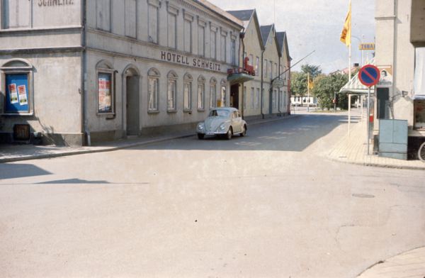 gatumiljö i Höganäs, biografen Saga.