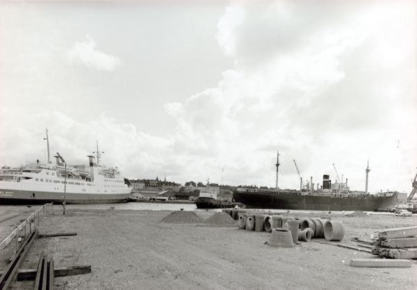 Södra hamnen sedd från Oceanhamnen, där man har börjat förberedelsen för bygget av Skåneterminalen