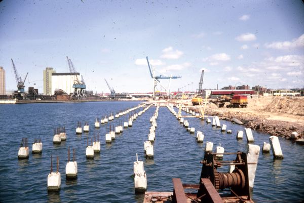 Kaj utvidgning i Sydhamnen vid containerkranen.