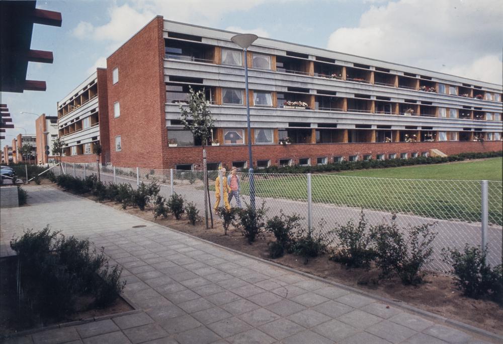 Bild från Drottninghög. Bilden tagen när området var nybyggt, sent 1960-tal eller tidigt 1970-tal, troligen på Grönkullagatan vid daghemmet.