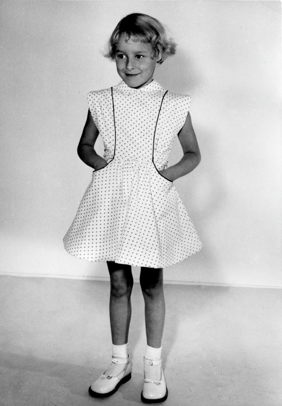 Birgitta Palm poserar i en klänning av Margita konfektion.