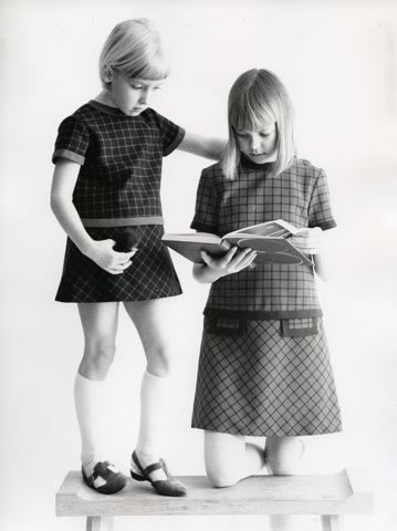 Bild av två flickor i klänningar från AB Margita konfektion i Helsingborg.
