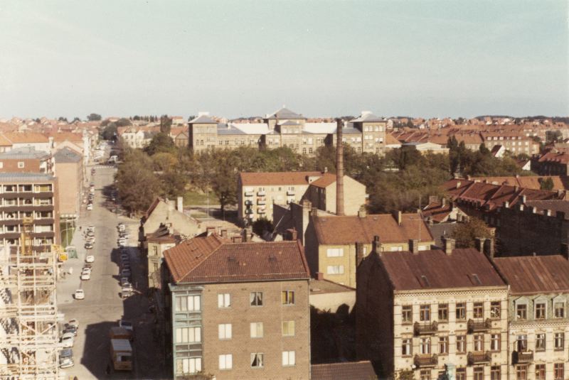Utsikt från Gustav Adolfs kyrkan, mot öster, på denna bild syns Nytorgsgatan och en byggnadsställning.
