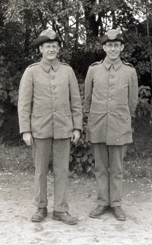 Text på baksidan av fotot: "Två lärare som bytt ut katedern mot övningsfälten kring Berga sept 1939"
