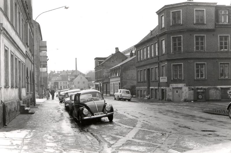 Några av de äldre hus som nu är rivna,på denna bild syns en affär som säljer däck.