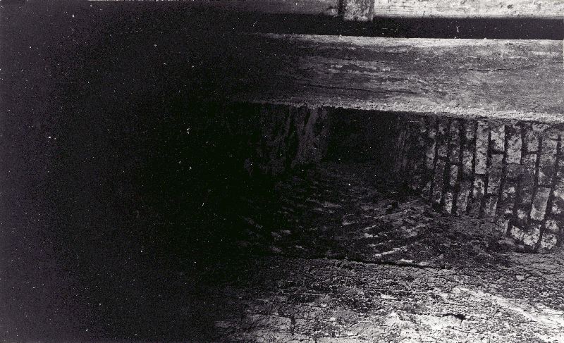 Bunkagården år 1971. Timrad stuga, skorstenen invändigt, foto från köket.