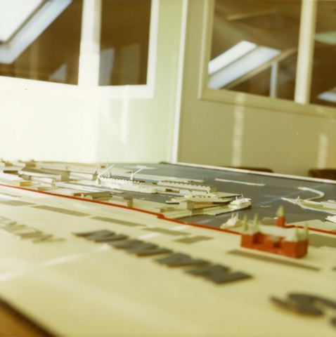 Modell över delar av hamnen där magasinen i Oceanhamnen finns med.
