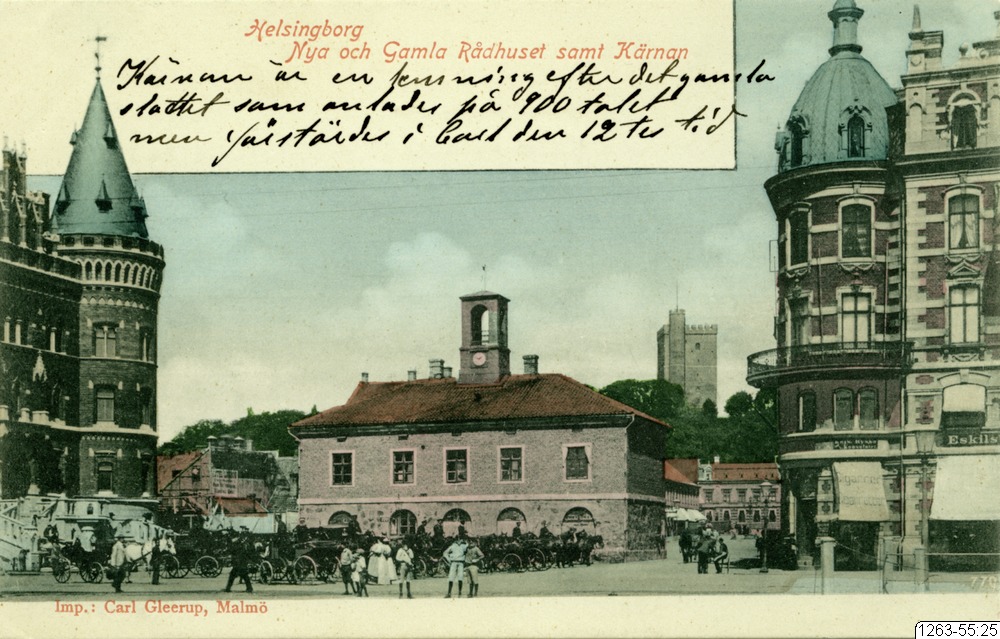 Helsingborg, nya och gamla rådhus samt Kärnan.