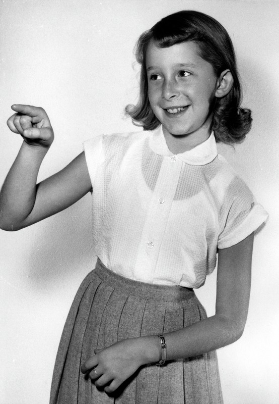 Birgitta Palm poserar i blus och kjol av Margita konfektion.