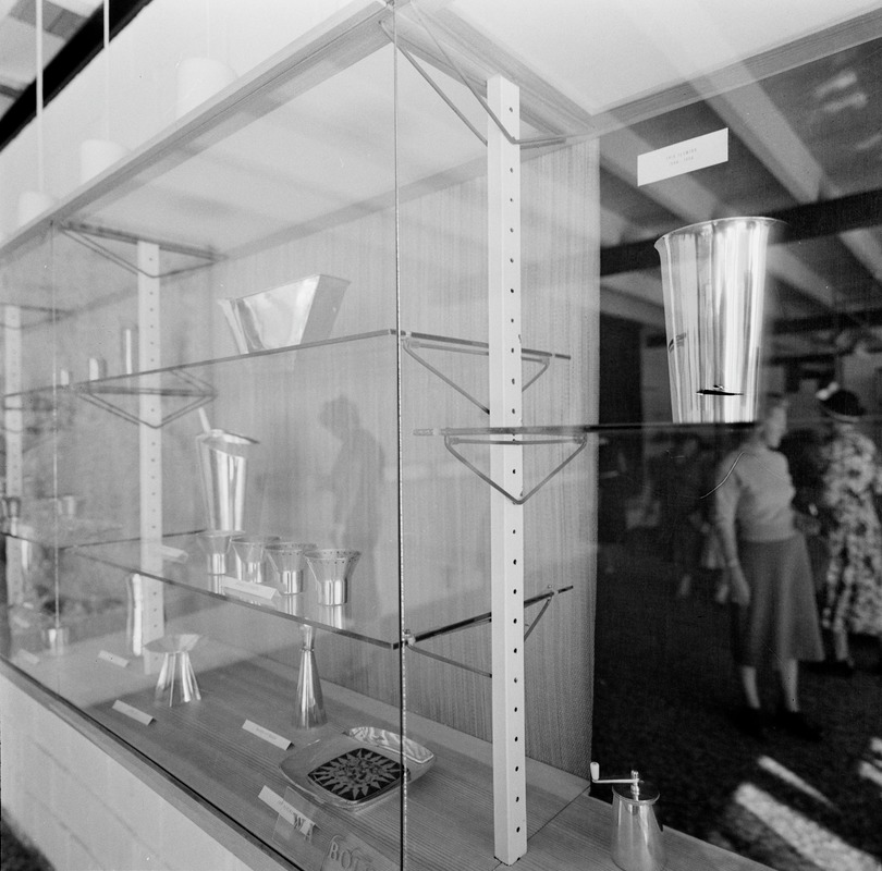 Bilden föreställer en sektion med glasmontrar med föremål i silver (?). I glaset ser man spegelbilder av personer.
