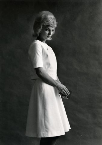 Bild av tonårsflicka i klänning från AB Margita konfektion i Helsingborg.
