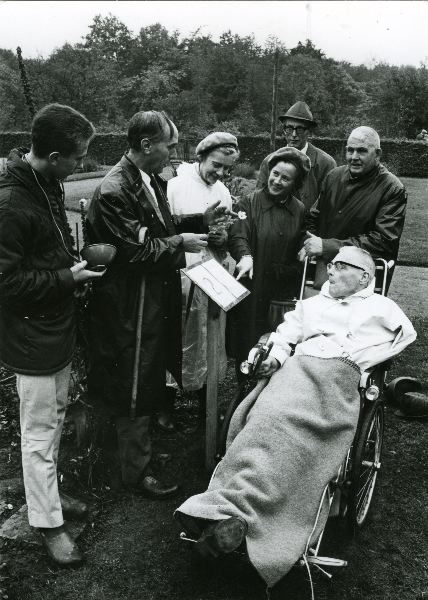 Från vänster Björn Engdahl och Hellmut Merker i samspråk med trädgårdsföreningens medlemmar.