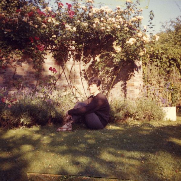 Fotografi på Margareta Weidhagen och de vackra rabatterna på Möllebacken. På bilden syns rosor.