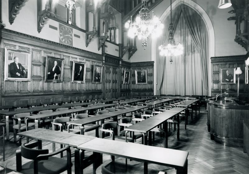 fotografi, interiör från stadsfullmäktigesalen i Rådhuset.