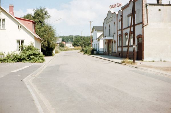 gatumiljö i Höganäs, i fastigheten till höger låg biografen Odéon.