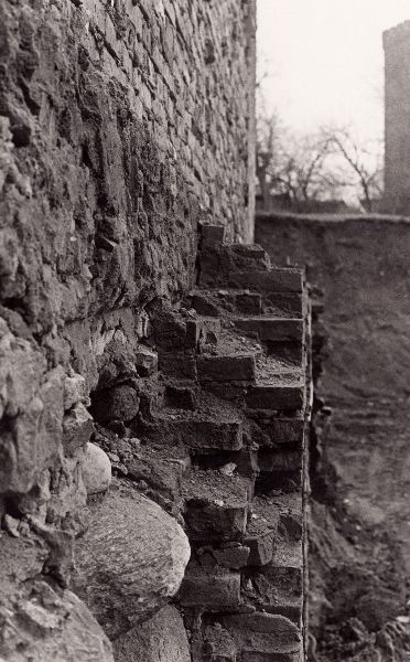 Detaljerad bild som visar en del av en husgavel, från vänstra sidan av huset som fanns på Nedre Långvinkelsgatan, år 1971.