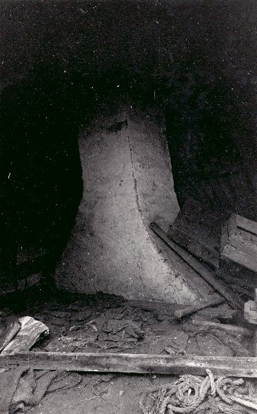 Bunkagården år 1971. Timrad stuga, vinden med skorsten.