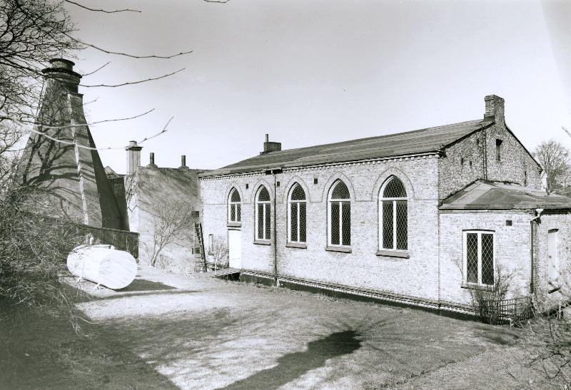 Bilden visar Baptistkyrkan, på Långvinkelsgatan 26, år 1971. Bilden visar kyrkans byggnadsdetaljer som t.ex. fönsternas arkader, glasmålningar, skorsten. I bakgrunden, till vänster syns på bilden två höga byggnader uppbyggda i lutande plan.