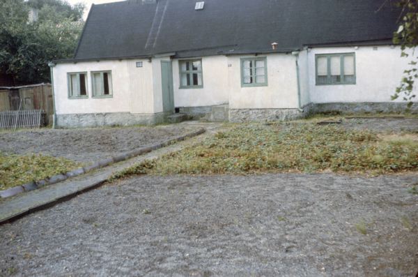 Bebyggelse utmed Lerbergsvägen med ett litet strandhus.