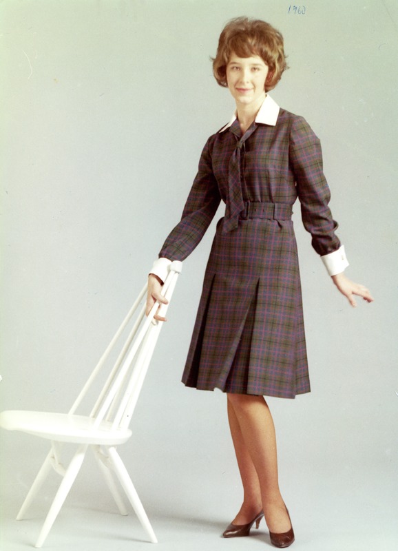 Birgitta Palm poserar i en klänning från Margita konfektion.
