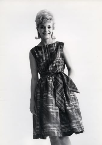 Bild av tonårsflicka i klänning från AB Margita konfektion i Helsingborg.