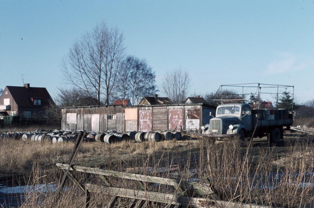 Bilden visar "Tunne-Sjöbergs" upplag på Husensjö mosse. Huset till vänster Har adress Åstorpsgatan 15 och den fjärde husgaveln från vänster (gult tegel) har adress Åstorpsgatan 13.