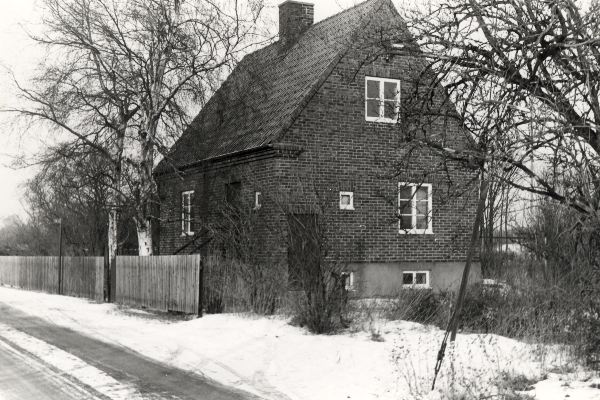 svartvitt fotografi föreställande bostadshus med trädgård, Arbogagatan 5, kvarter Helena. År 1970.