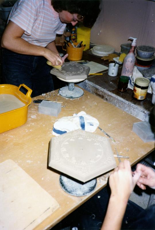 Fotografi föreställer klocktillverkning på AB Jie Johnson. Noterat på baksidan: Klocktillverkning. Okänd dam.