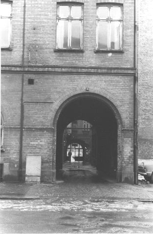 svartvitt fotografi föreställande bostadshus vid Folkets Hus med ett valv in mot gården, Hantverkaregatan 30, kvarter Amerika norra. År 1969.