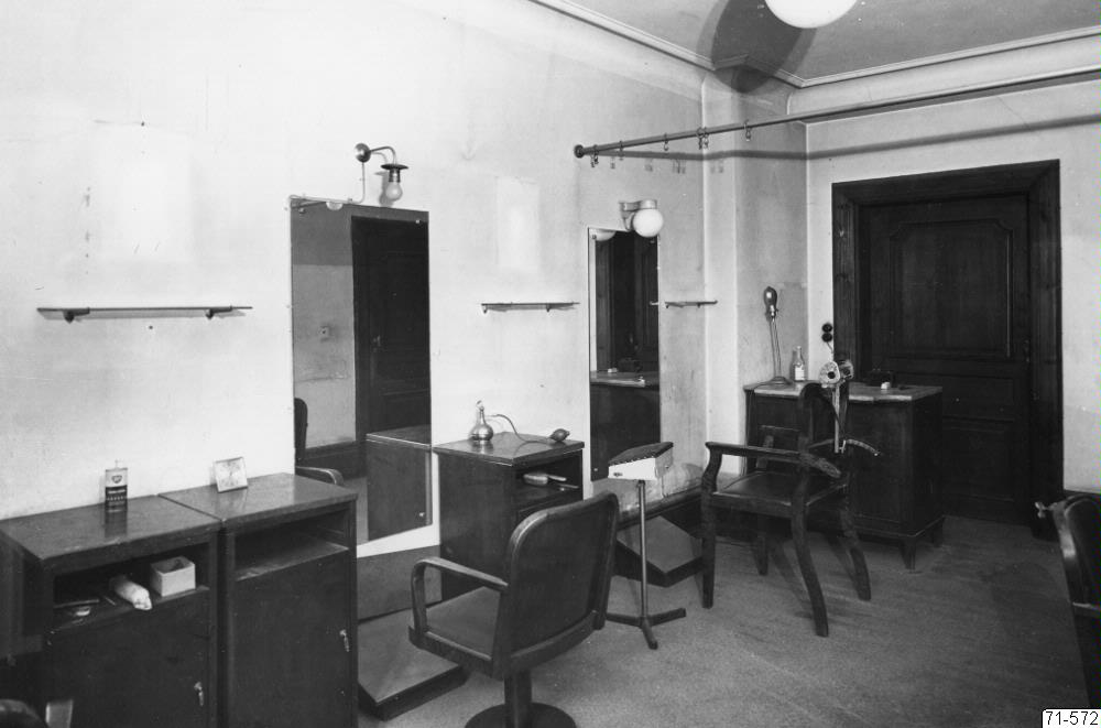 Frisersalong i "Gamlegård" inan den flyttades till stadskvarteren på Fredriksdal.