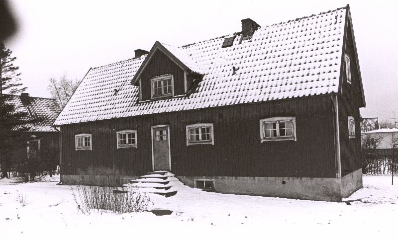 Bilden visar framsidan av ett bostadshus som fanns på Godemansgatan 5, år 1971.