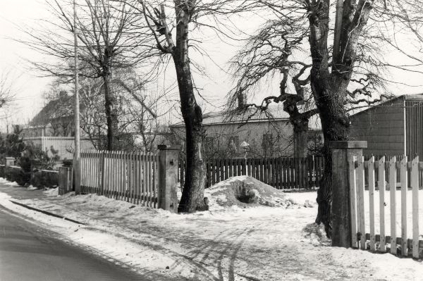 svartvitt fotografi föreställande gårdsplan med bostadshus i bakrunden. Valhallagatan 7,9 och 11,kvarter Ankan år 1970.