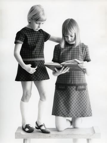 Bild av två flickor i klänningar från AB Margita konfektion i Helsingborg.