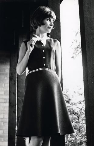 Bild av ung kvinna i klänning från AB Margita konfektion i Helsingborg.