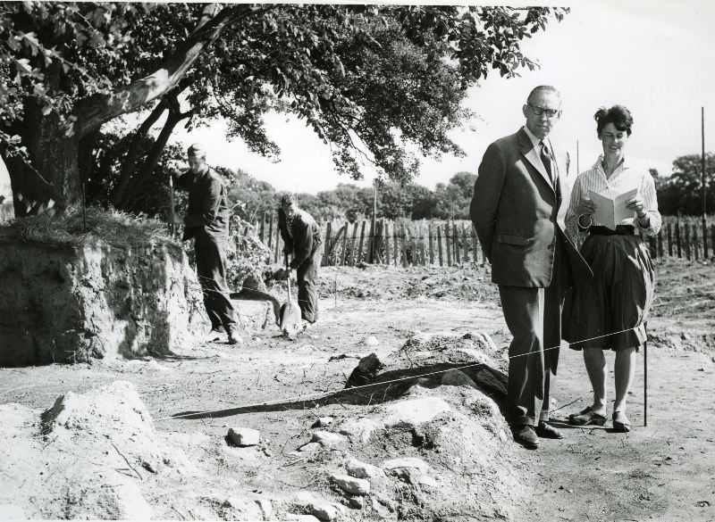 Fotografi från höger av Margareta Weidhagen och Karl Salomonsson vid utgrävningarna på Drottninghög.
