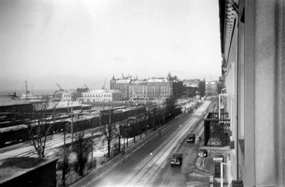 Utsikt från företaget Simplex fönster på Järnvägsgatan 25. På bilden syns Järnvägsgatan och Järnvägsspår.