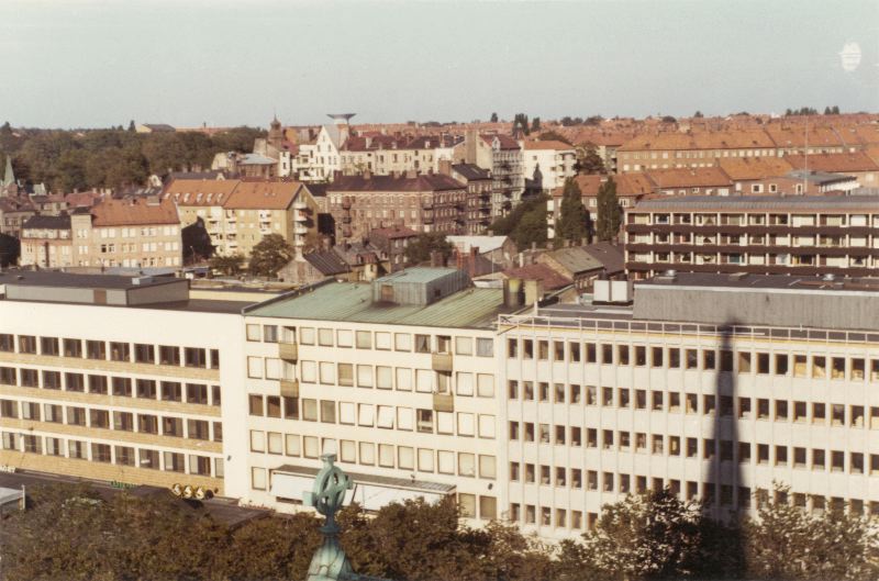Utsikt från Gustav Adolfs kyrkan. Södergatan och kontorshus i kv Danmark