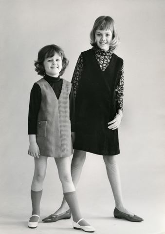 Bild av två flickor i klänningar från AB Margita konfektion i Helsingborg.