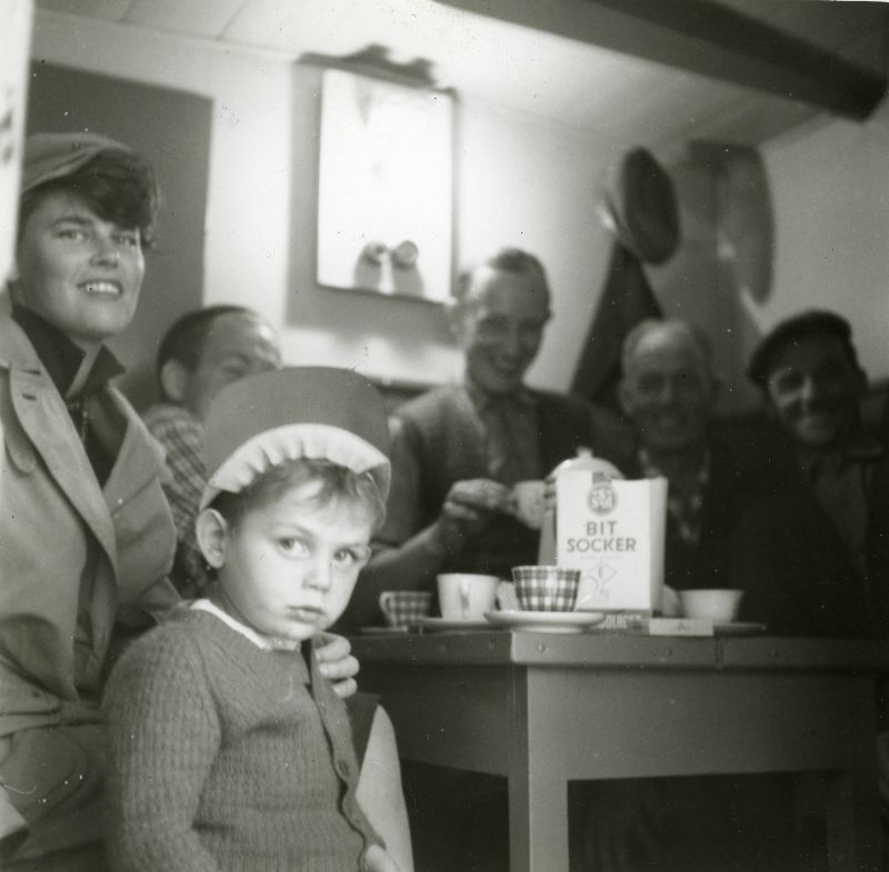 Margareta Weidhagen (till vänster) och övrig museipersonal har kaffepaus på stadsmuséet.