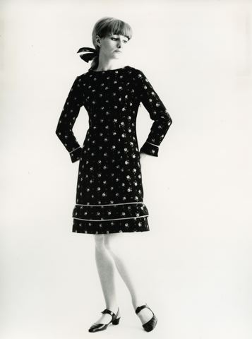 Bild av tonårsflicka i klänning från AB Margita konfektion i Helsingborg.