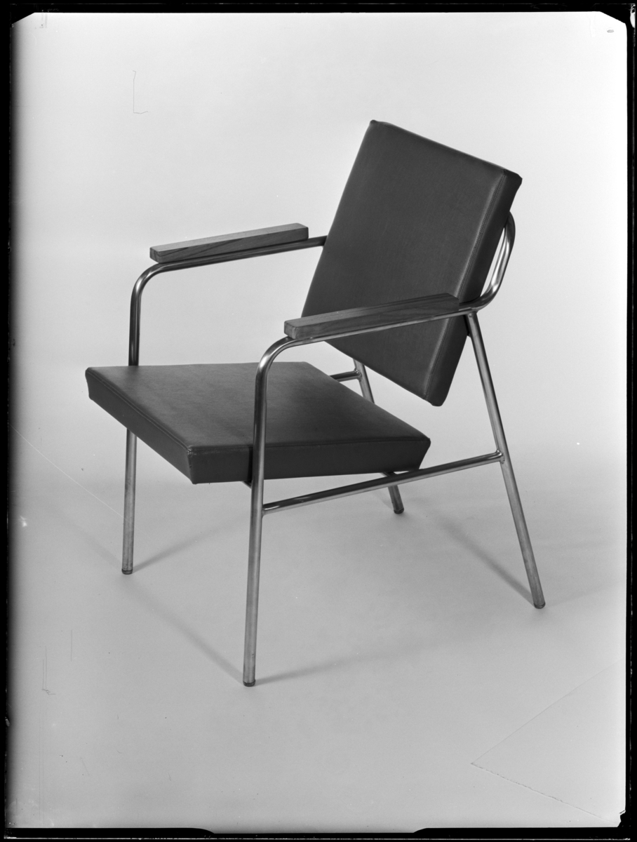 STÅLRÖRSFÅTÖLJ SAMT KARMSTOL I EK MED SVART SITS