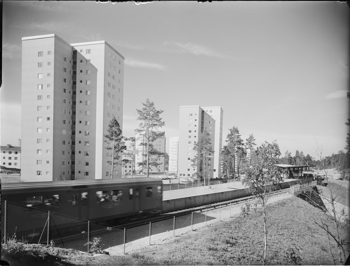 EXT. TUNNELBANESTATION OCH HÖGHUS HÄSSELBY SAMT GÅNGTUNNEL I VÄLLINGBY