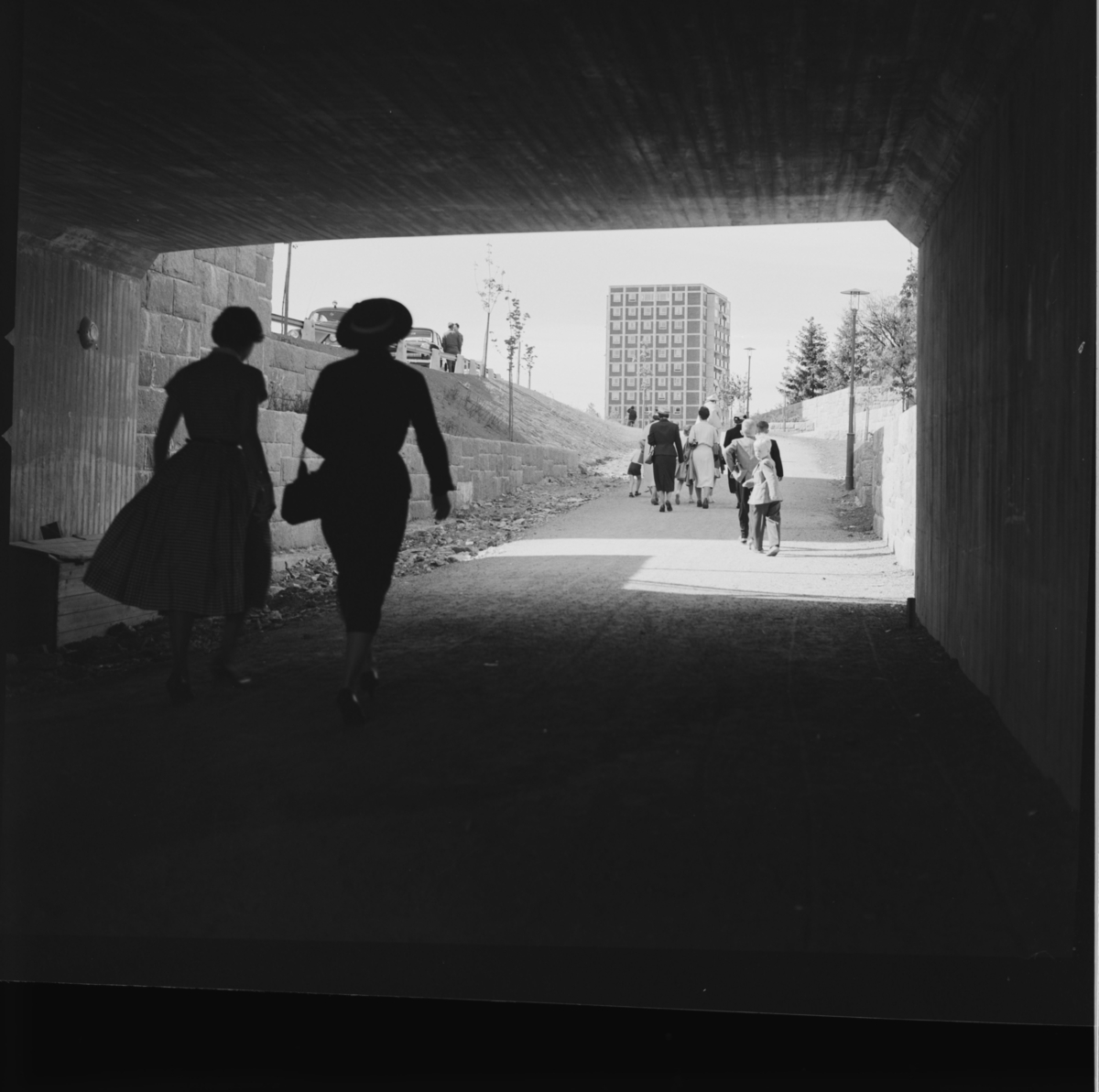 EXT. TUNNELBANESTATION OCH HÖGHUS HÄSSELBY SAMT GÅNGTUNNEL I VÄLLINGBY