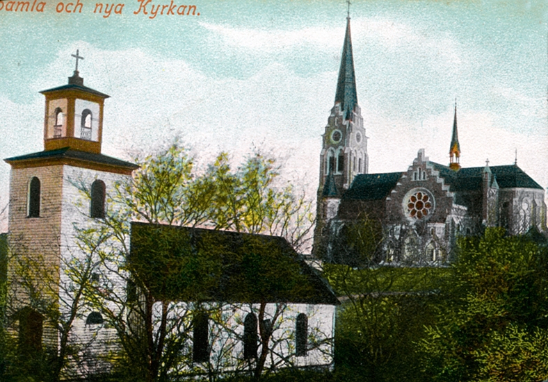 Enligt uppgift på vykortet: "Gamla och nya Kyrkan".