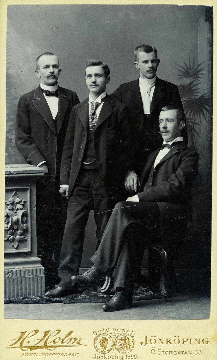 Grupporträtt på konfirmander år 1890. Namn på konfirmanderna Adin, Blomgren, Granquist, Norling.